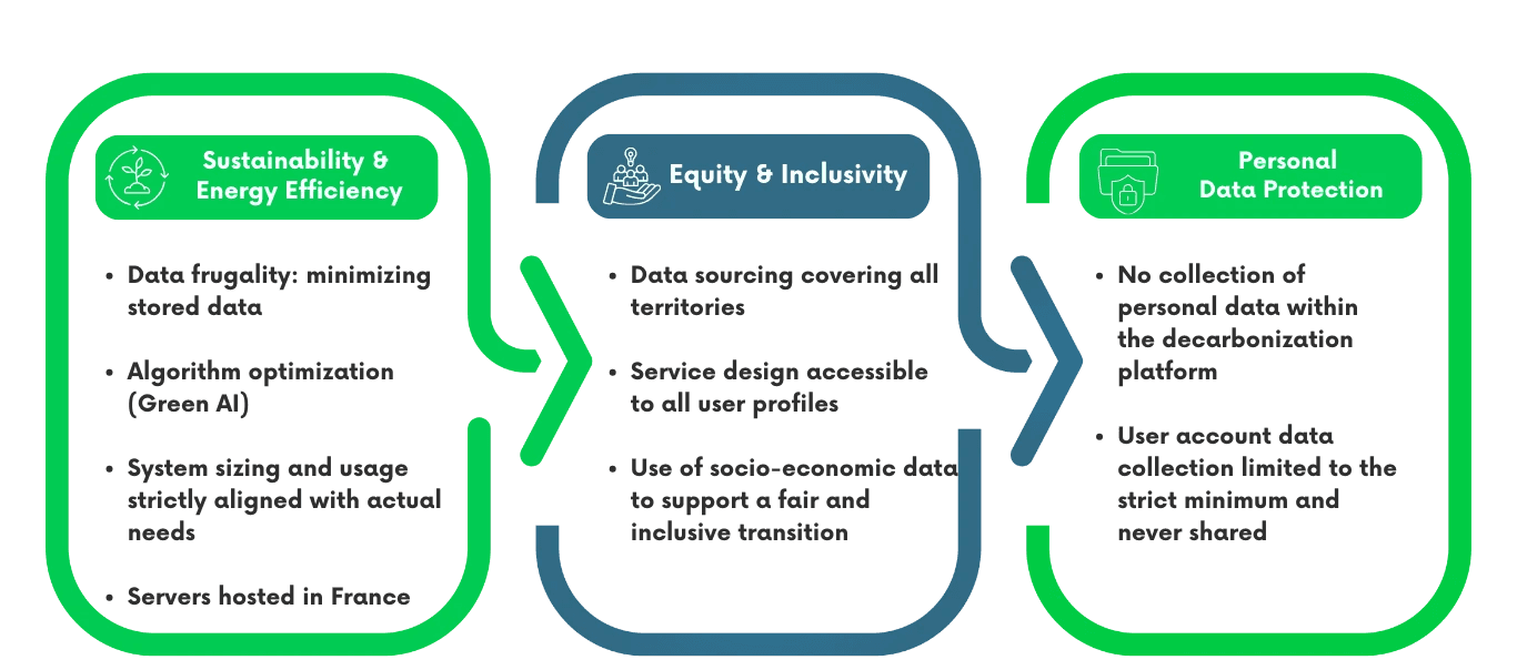 Applying Sustainable Digital principles to the decarbonisation of urban activities means delivering an ethical and responsible information platform, combining technical performance with strong social and environmental requirements.