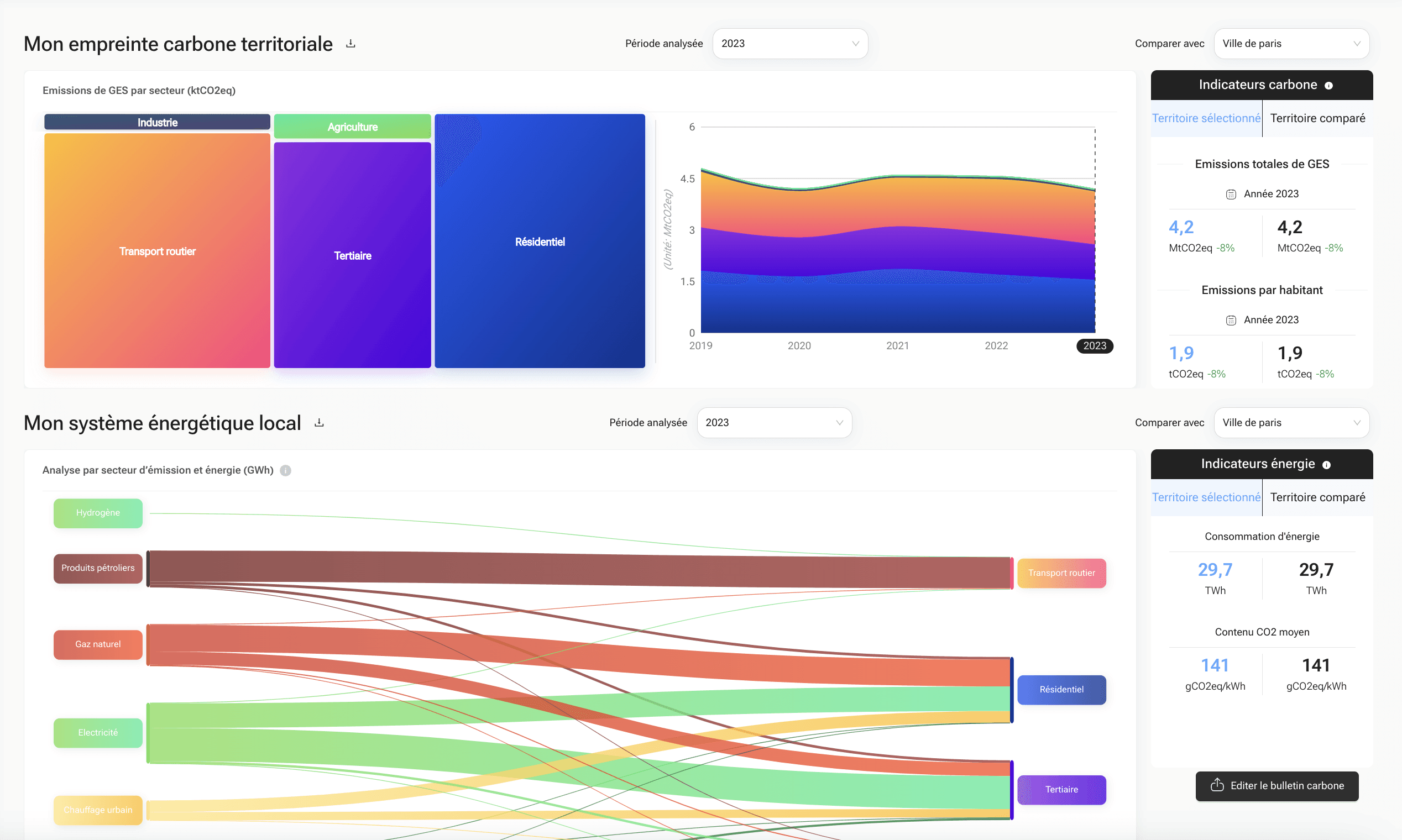 Obtenez des données précises et actualisées sur les émissions carbone de votre territoire pour piloter efficacement vos actions climatiques et atteindre vos objectifs réglementaires.